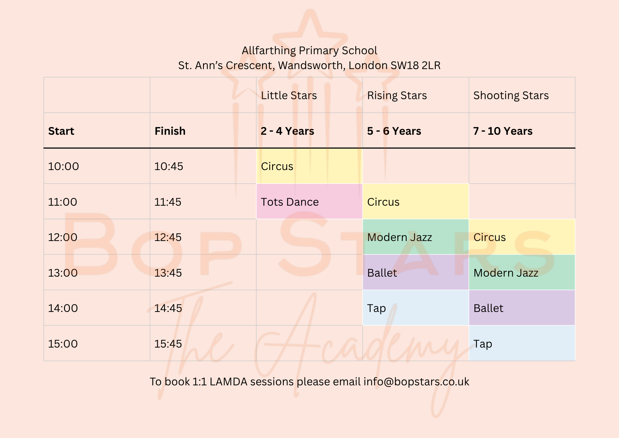 Welcome to The Academy by Bop Stars, where young performers can explore a range of innovative Dance and Performing Arts classes. Our exciting new timetable includes Ballet, Tap, Modern Jazz, and Circus Skills, giving children the freedom to book classes in any combination that suits their interests and schedule.